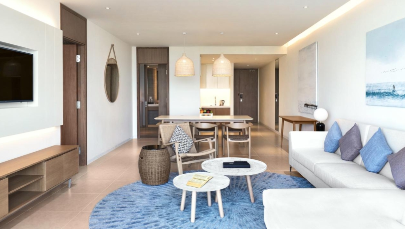 Nếu đi nghỉ dưỡng với một nhóm bạn lớn, du khách hoàn toàn có thể lựa chọn căn hộ này của Premier Residences Phu Quoc Emerald Bay. Với diện tích 148 mét vuông, không gian đem đến sự sang trọng và rộng rãi, thuận tiện cho việc di chuyển đến bãi biển, spa, Clubhouse và gym của khách sạn.